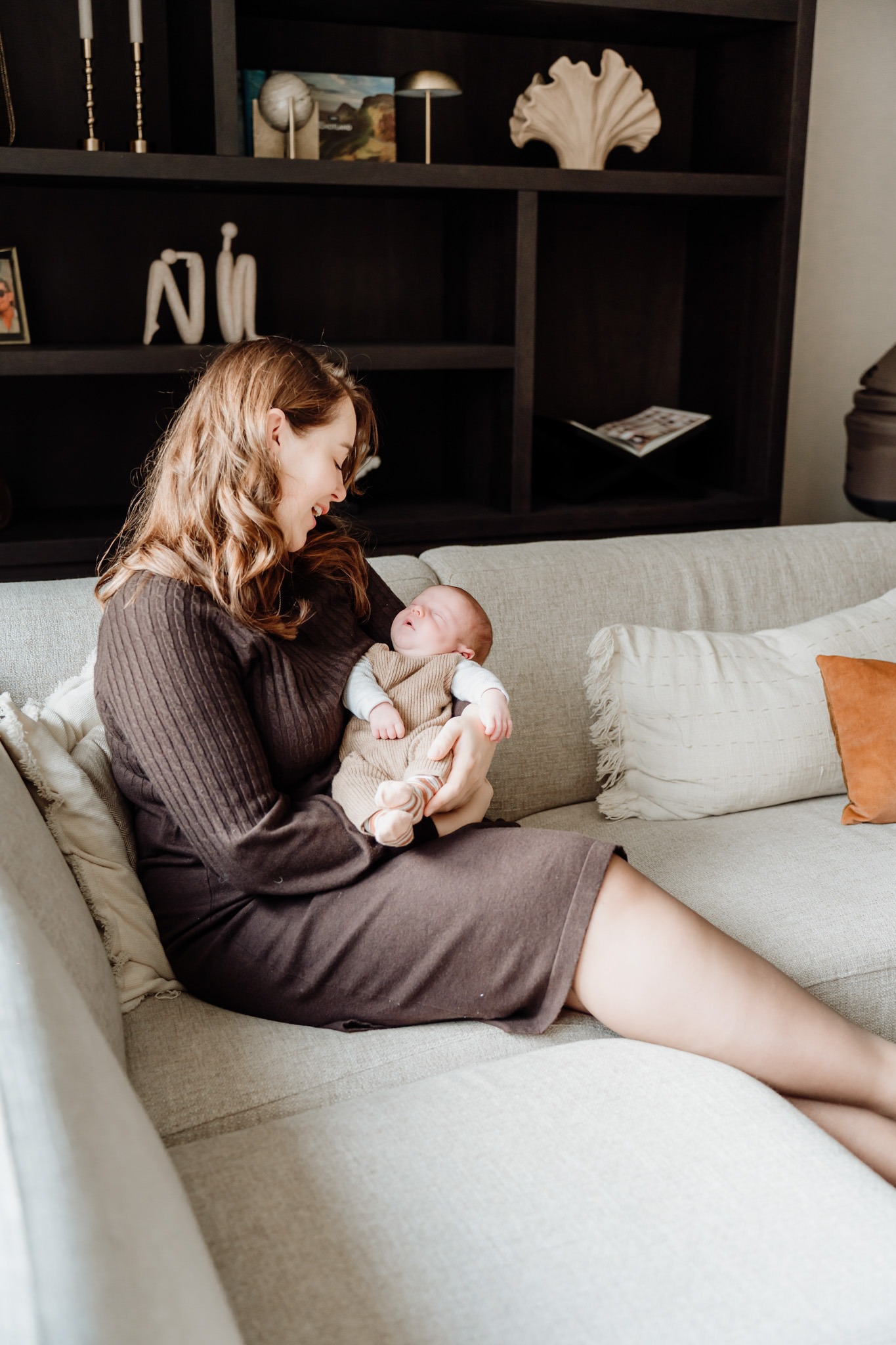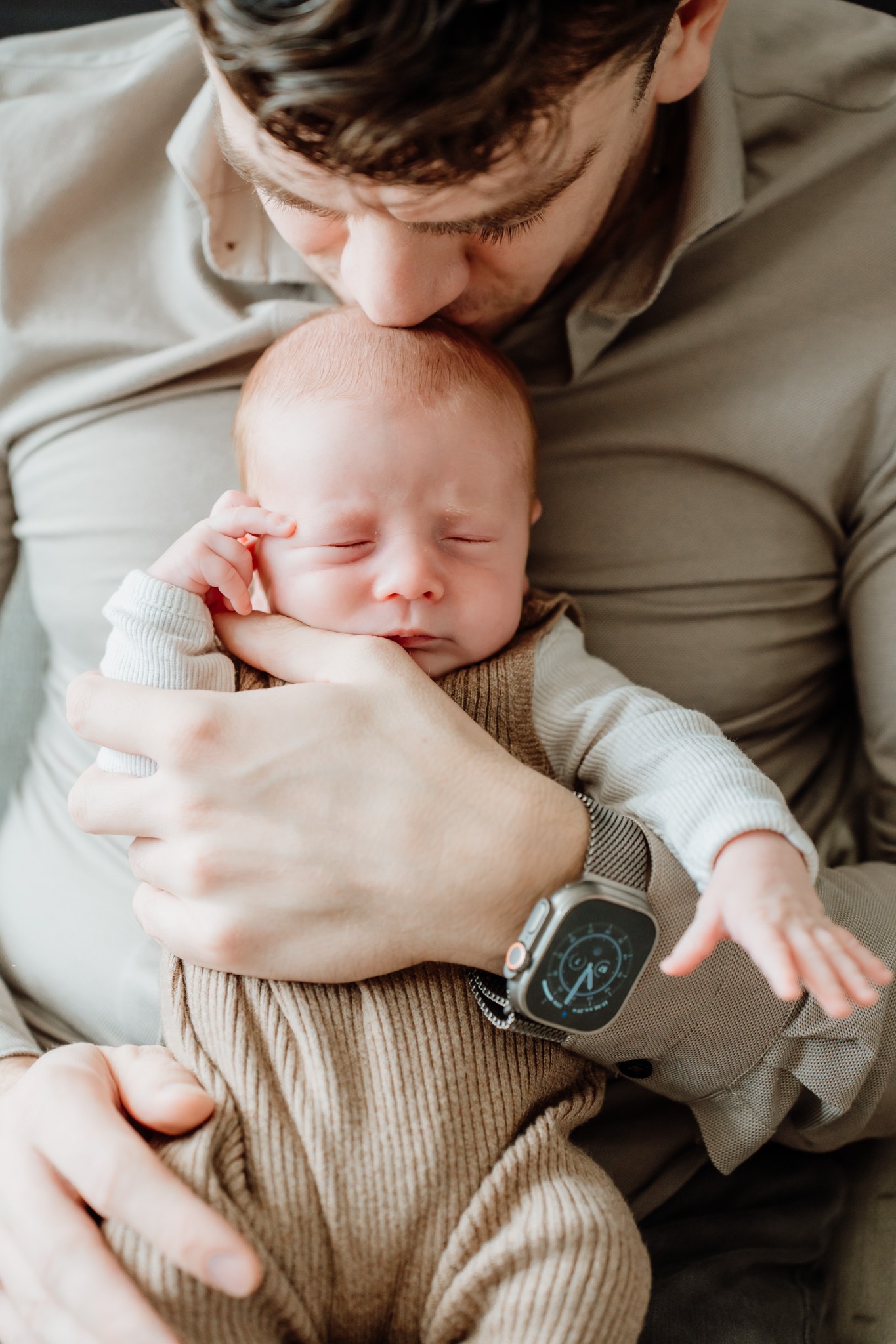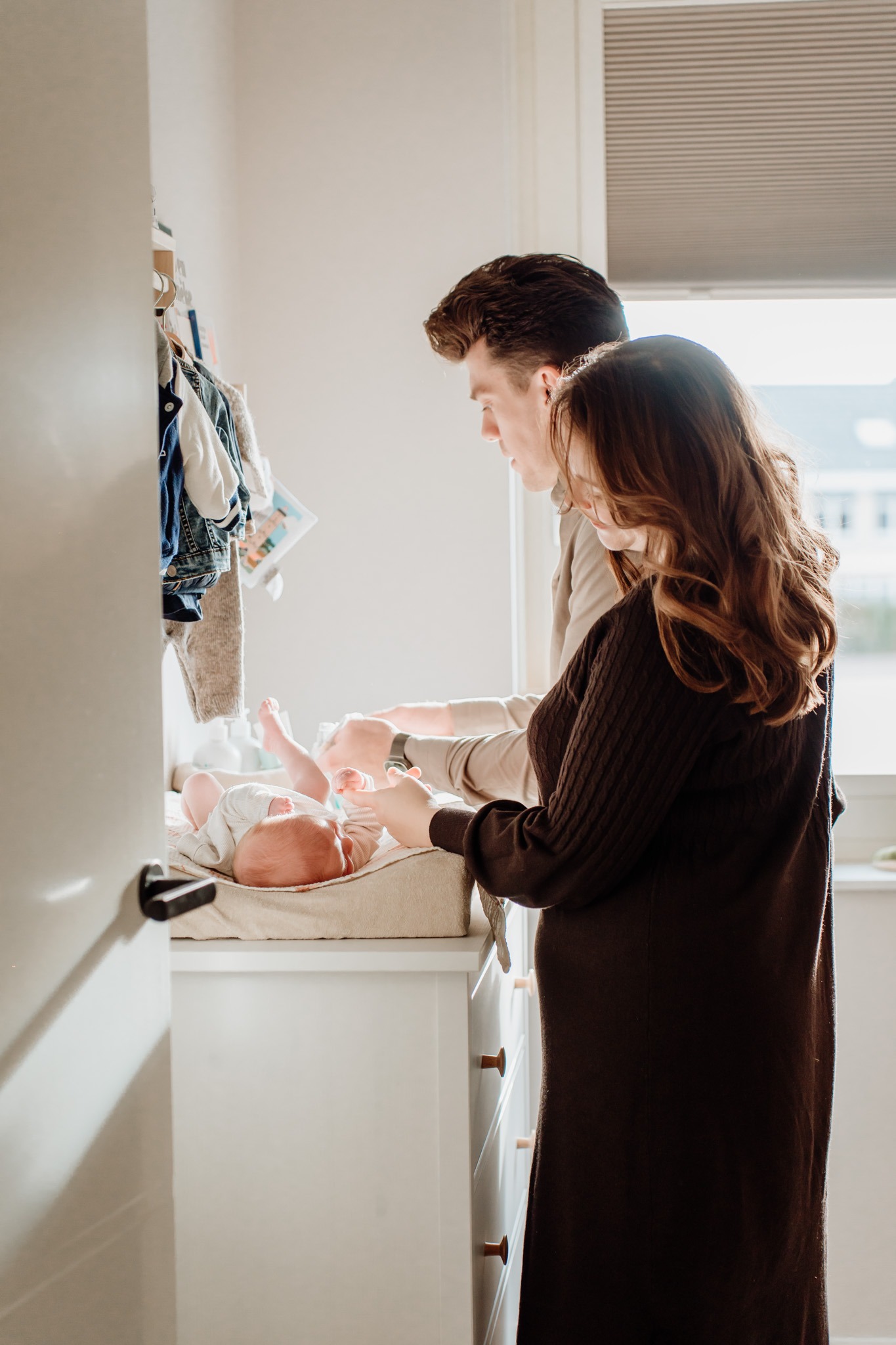- Lifestyle fotografie: Bij een lifestyle shoot (zoals de foto’s van Tommie op de bank) draait het minder om de ‘geposeerde’ houding en meer om de connectie. Dit kan eigenlijk op elk moment in de eerste twee maanden.