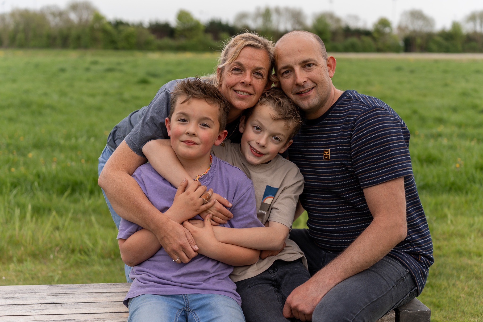 Dat soort verzoekjes vind ik heerlijk. Geen uitgebreide planning, geen gedoe. Gewoon gaan. Diezelfde avond stond ik in hun achtertuin in Zuidland, waar alles vanzelf liep. Kinderen speelden, de sfeer was warm en ontspannen, en we maakten samen een serie foto’s die precies laat zien hoe het écht was die dag.