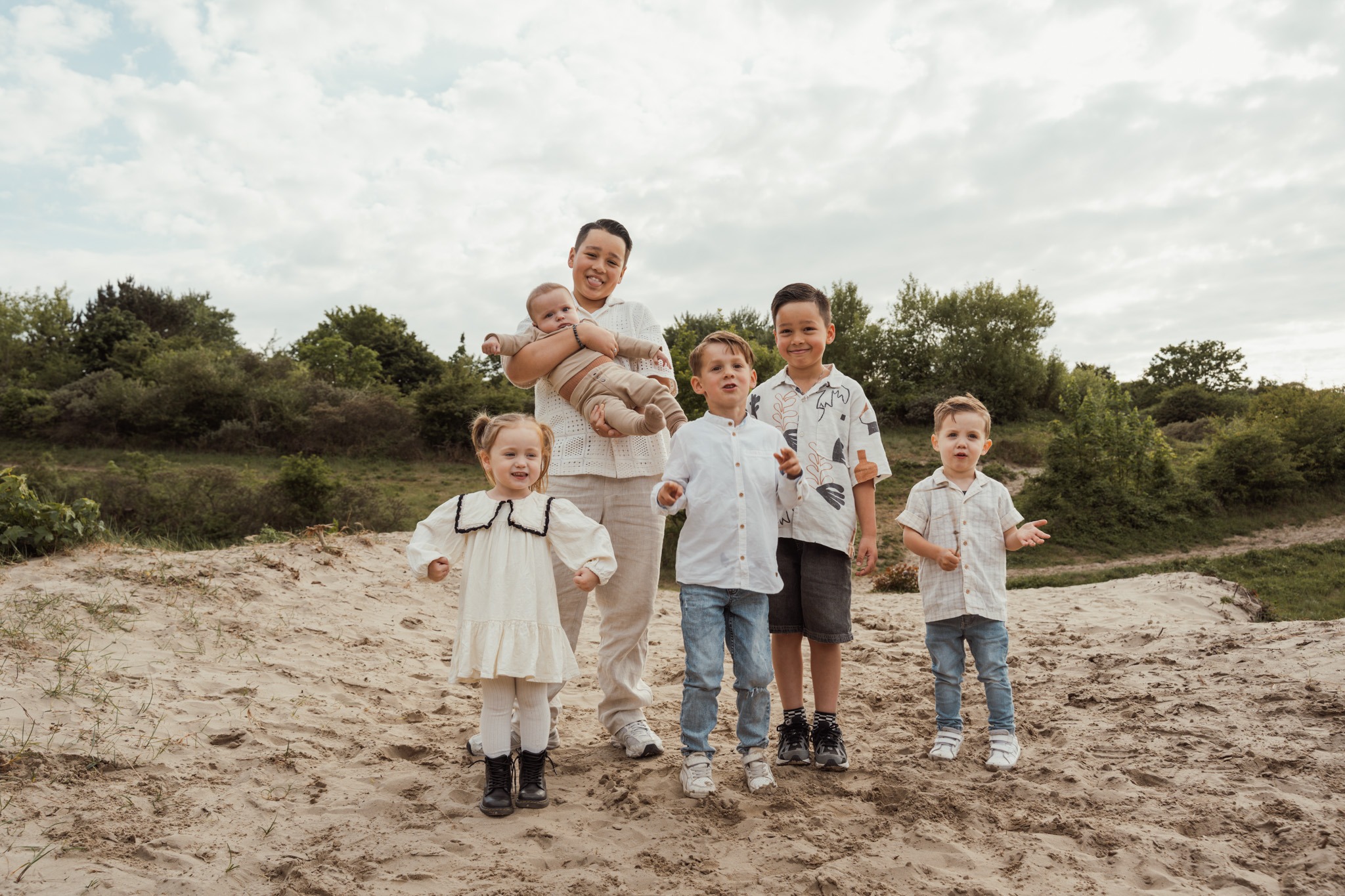 We beginnen gewoon. De kinderen gaan spelen. Jij tilt een kind op. Je partner veegt ergens zand uit een oortje. Ik loop er tussendoor, met mijn camera in m’n hand, alsof ik er gewoon bij hoor (wat eigenlijk ook zo is).