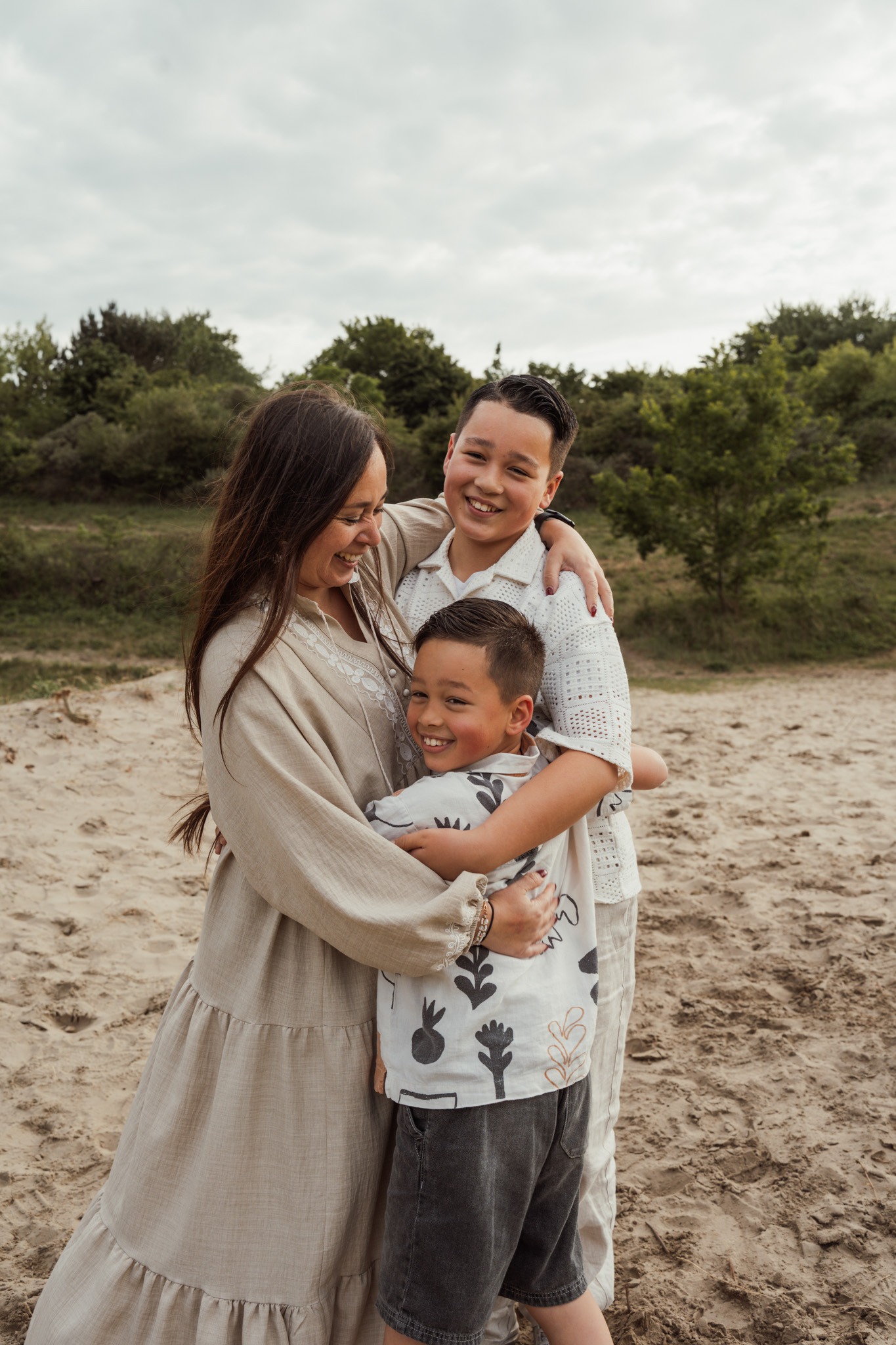 Het is een herinnering aan hoe jullie nu zijn. Ongefilterd, liefdevol en samen. Geen geposeerde houdingen, maar rennen door het zand, knuffels die vanzelf komen, en een kind dat op het juiste moment in de camera kijkt — of juist niet, en dat is net zo mooi.