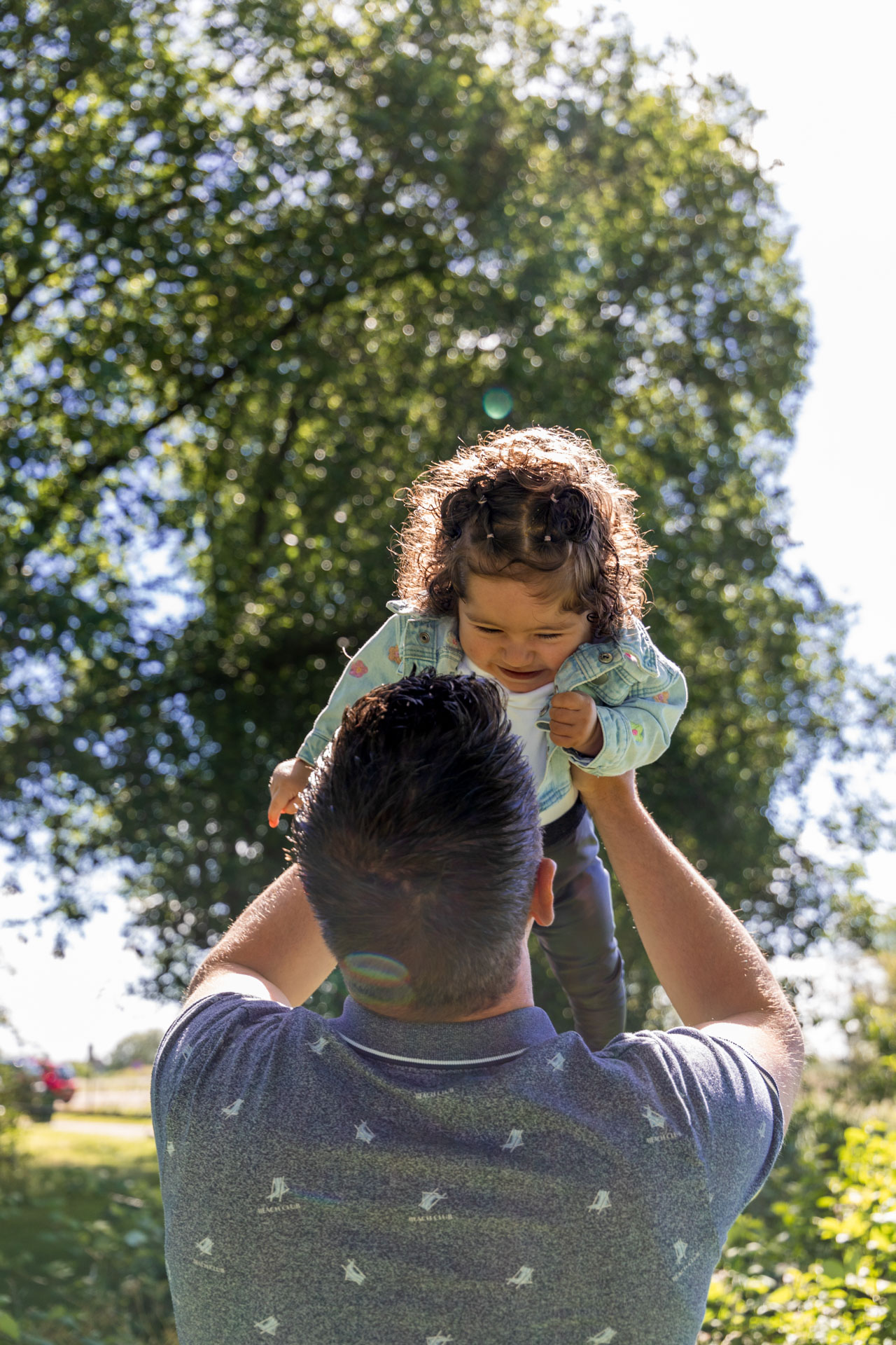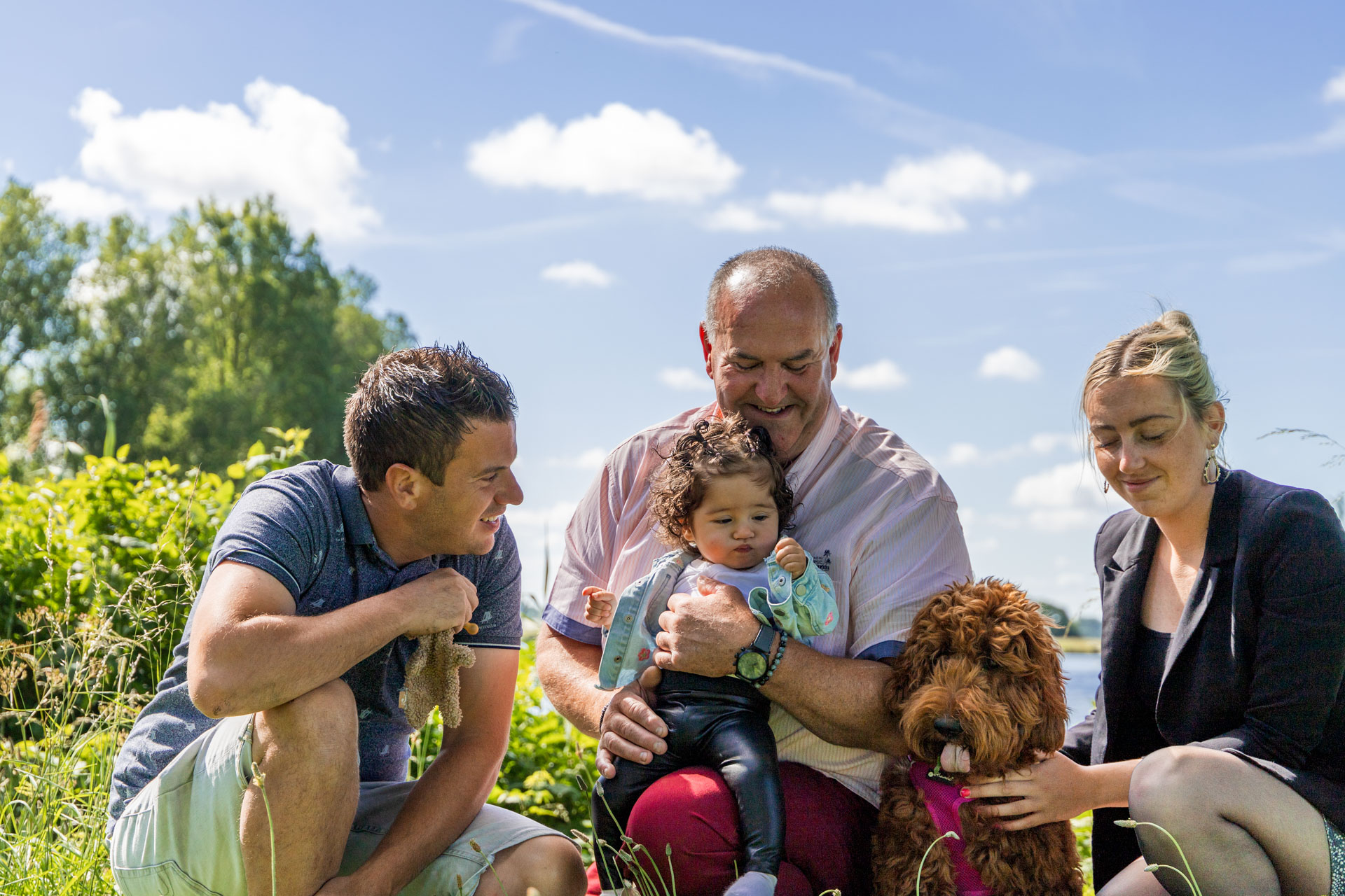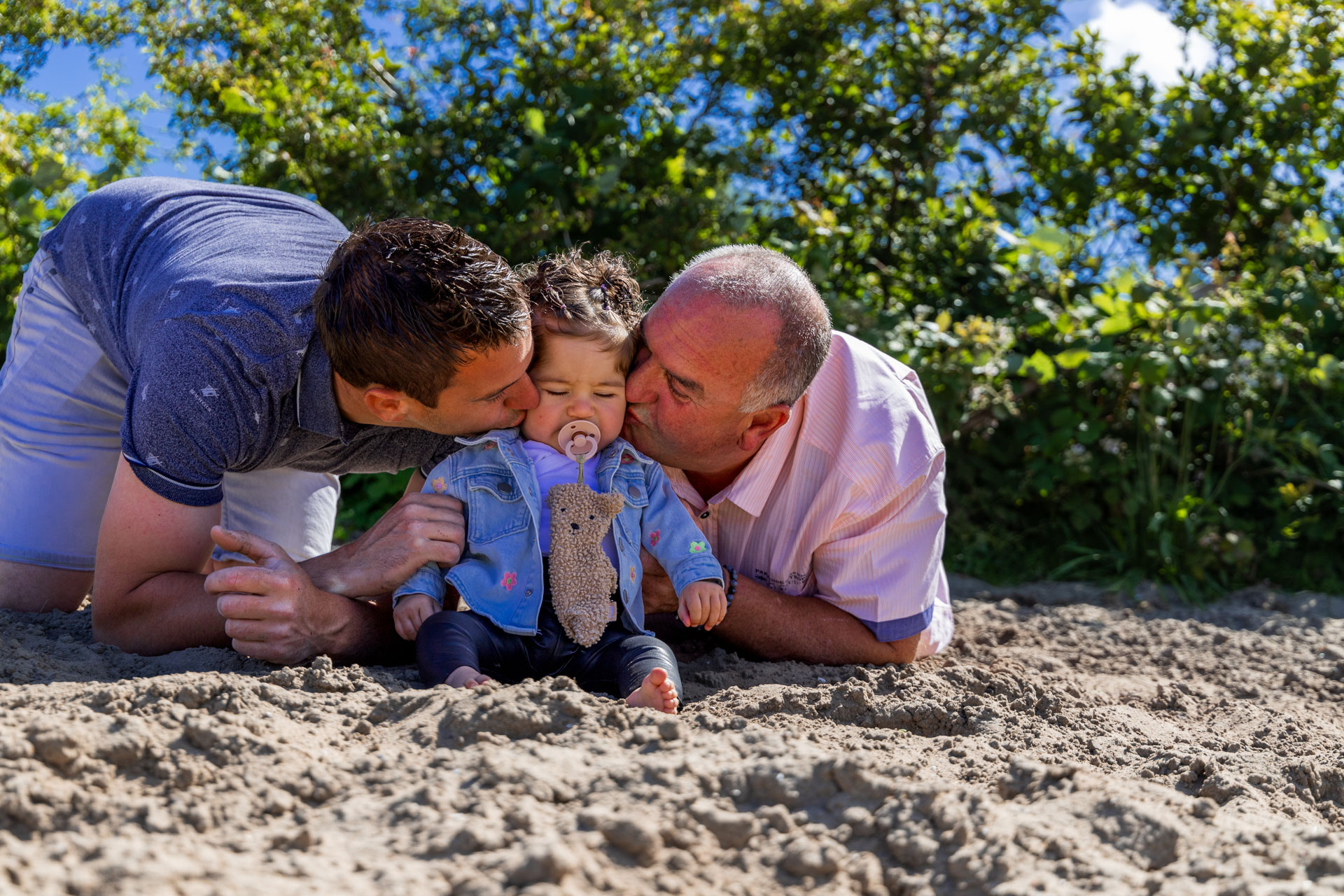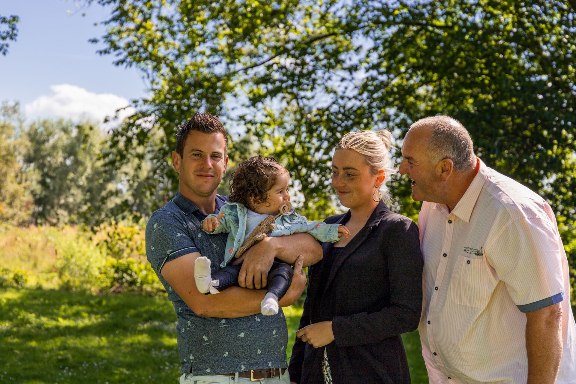 De zon liet zich precies op het goede moment zien. Het gras was wat langer, de sfeer ontspannen. Hun dochtertje zat lekker bij papa of mama en naderhand lekker in het zand op het kleine recreatie strandje, met haar handjes in het zand en grote ogen vol verwondering. Papa en mama waren dichtbij, met zachte woordenlieve woordjes en veel knuffels en de hond hield alles vrolijk in de gaten.