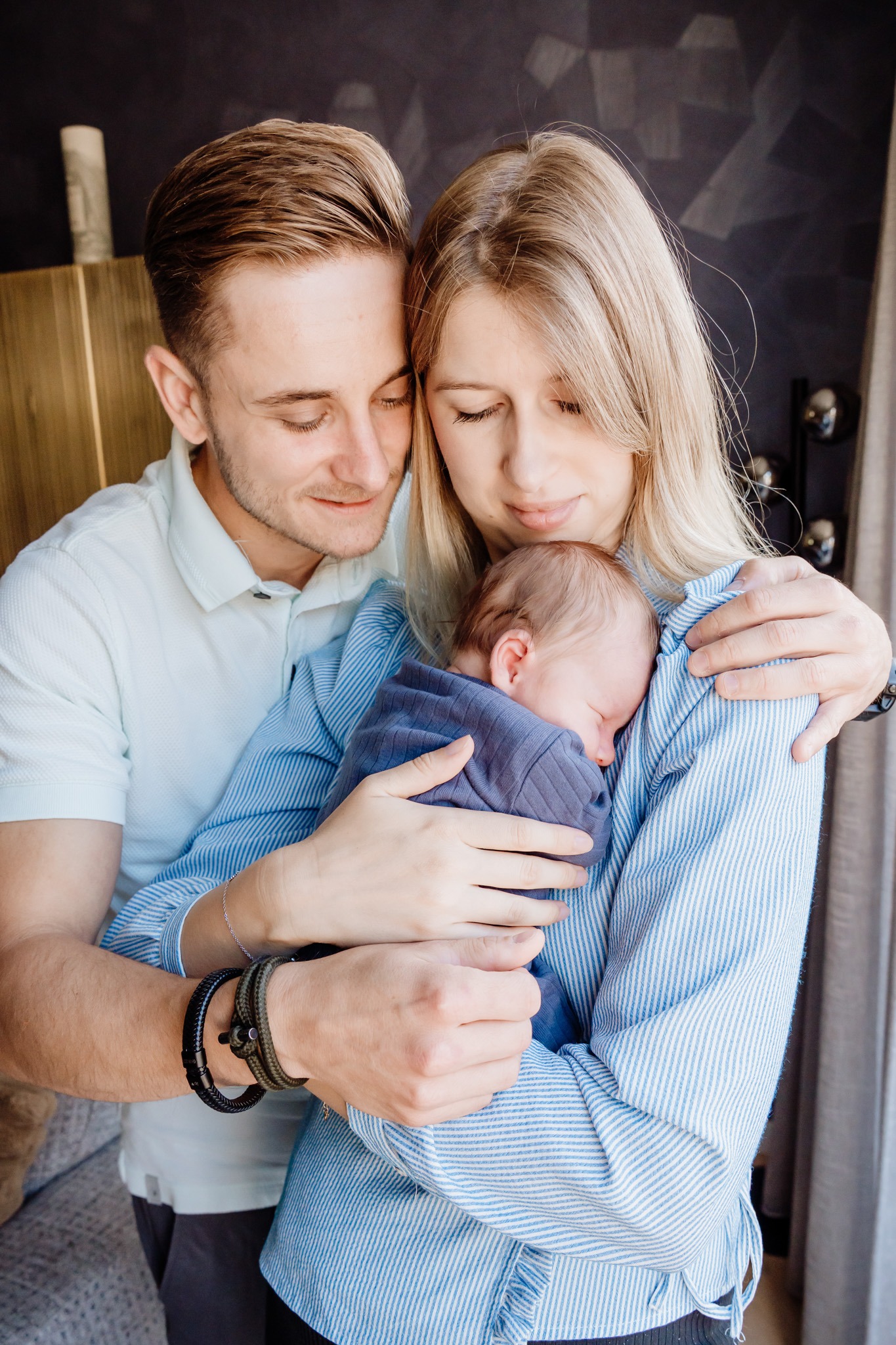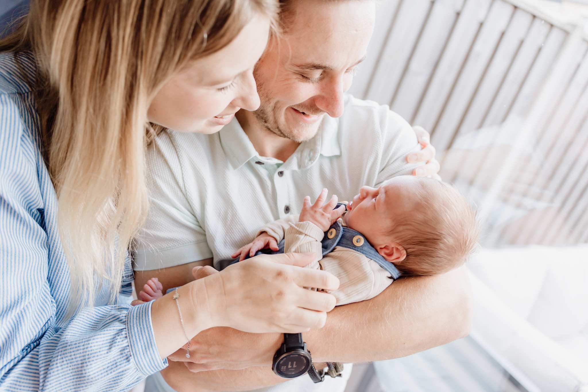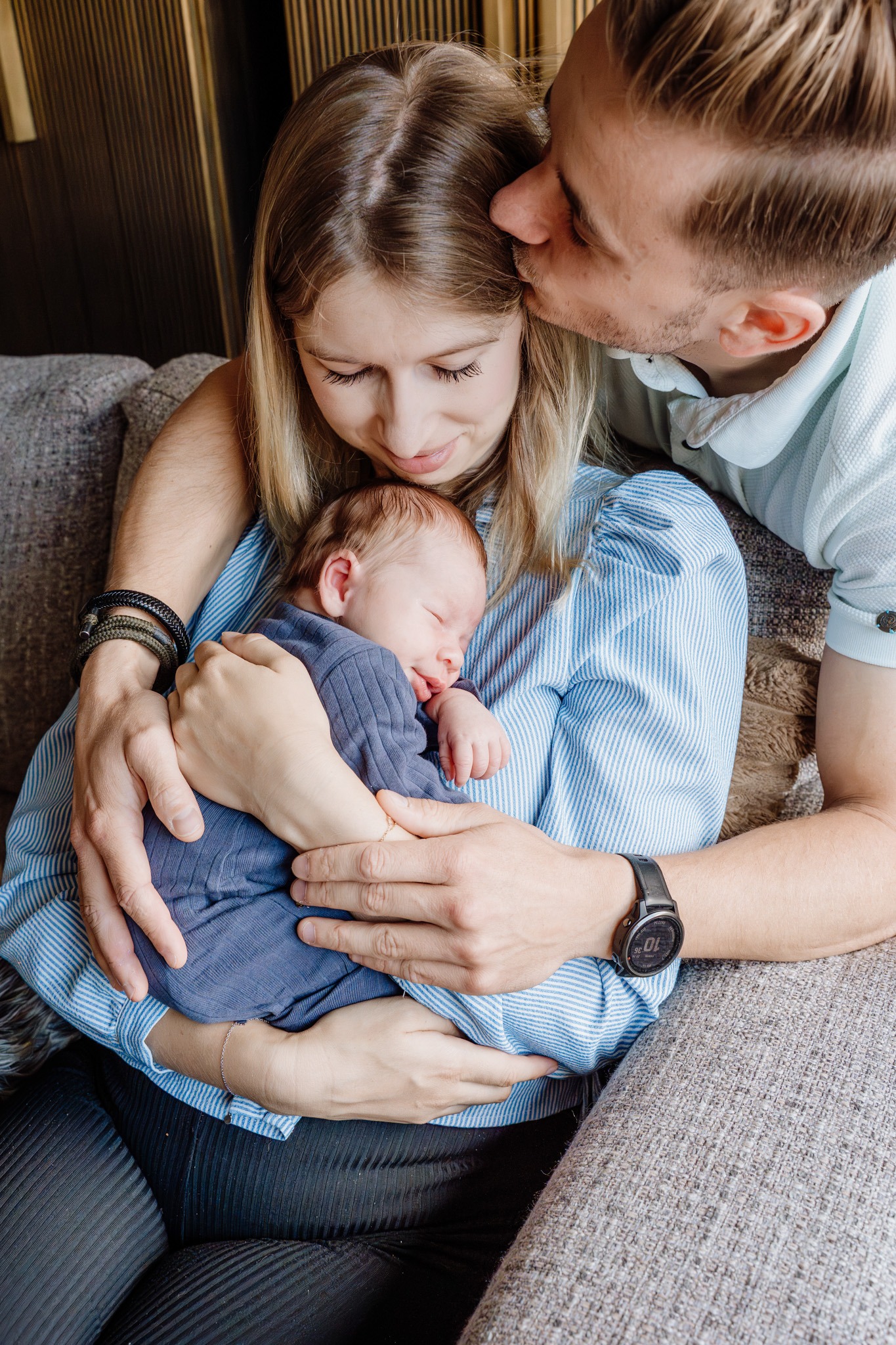Tijdens de shoot focus ik niet alleen op het hele gezin, maar juist ook op die kleine dingetjes die je later bijna zou vergeten. De piepkleine handjes van Jip, hoe hij tevreden tegen mama aan ligt te slapen of die eerste haartjes. Het gaat allemaal zo bizar snel voorbij. Juist die details maken de herinnering compleet. We zijn ook nog even naar de babykamer gegaan voor wat foto’s in de schommelstoel, een heerlijk licht plekje waar Jip zich duidelijk heel fijn voelde.