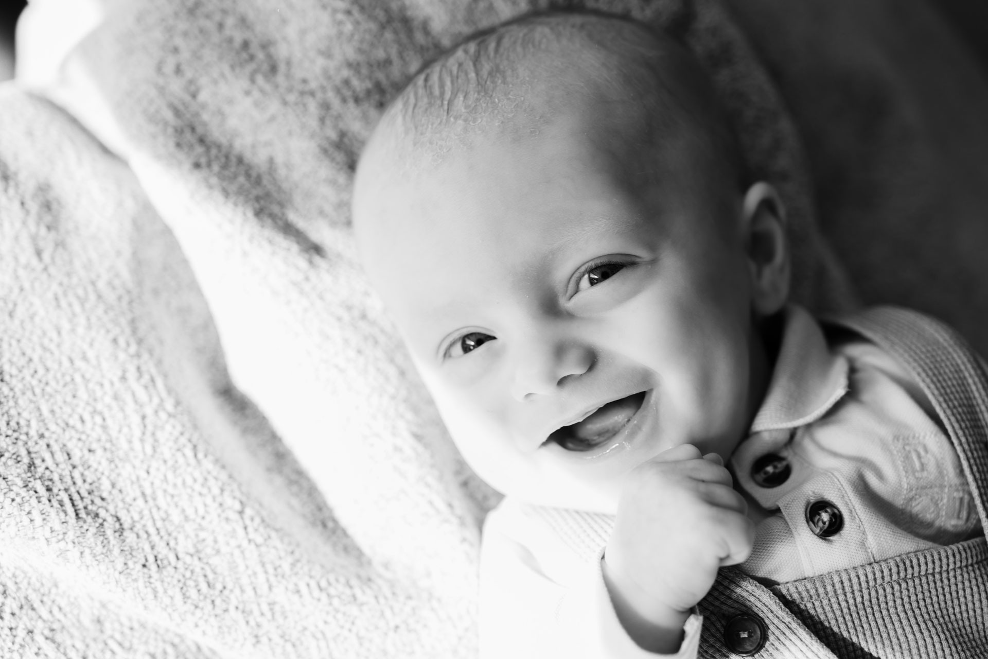 - Wakkere momenten: Waar een hele jonge baby vaak alleen maar slaapt, is een baby van 3 maanden veel wakkerder. We kunnen dus veel meer verschillende blikken en bewegingen vastleggen terwijl hij de wereld ontdekt.
