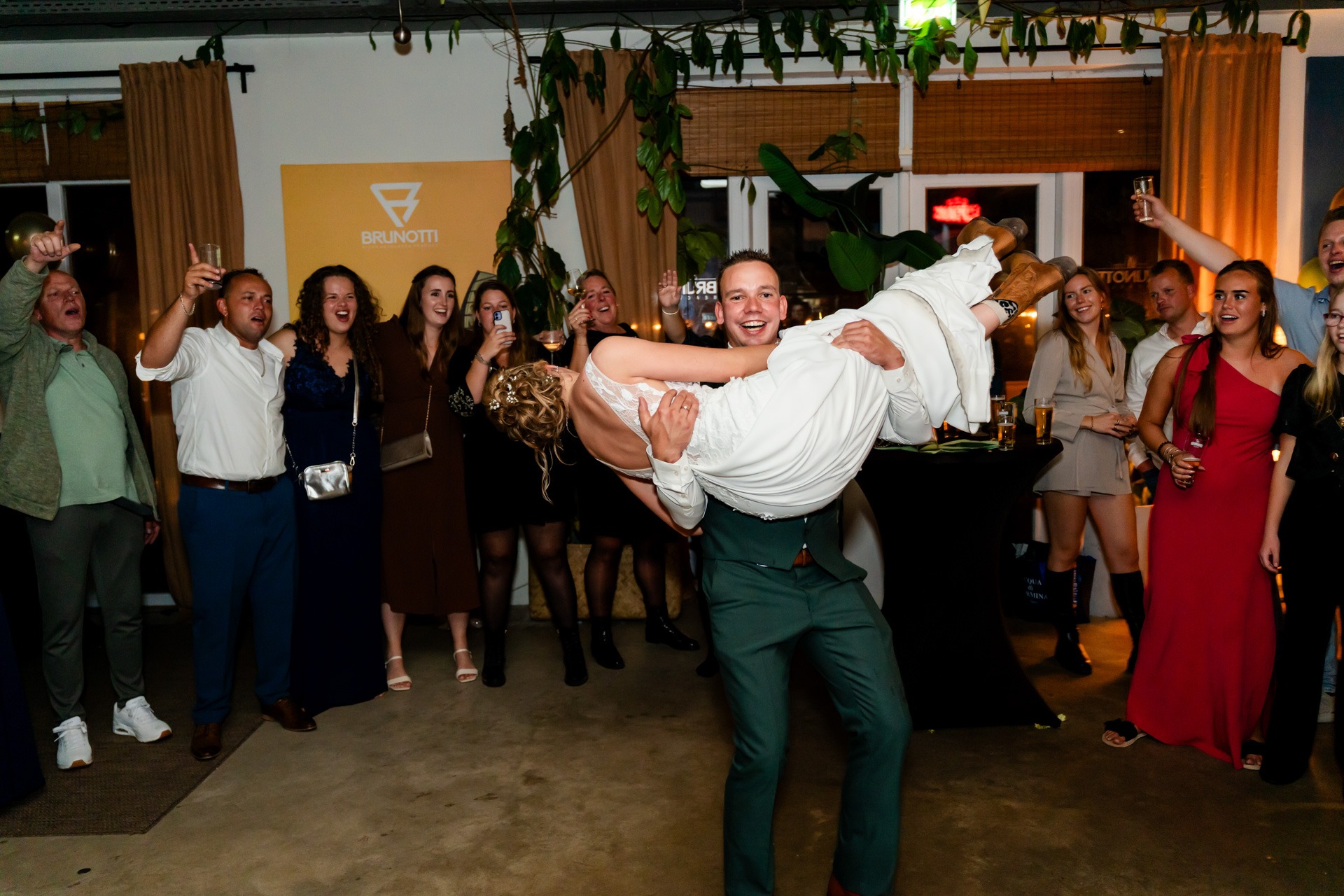Voor de rest van de dag en het grote feest was er gekozen voor Beachclub Brunotti in Oostvoorne. Ook al was het oktober, de sfeer bij Brunotti is altijd warm en welkom. Het is een van mijn favoriete plekken voor een bruiloft in Oostvoorne omdat je er echt dat ultieme vakantiegevoel krijgt, ongeacht de temperatuur buiten.