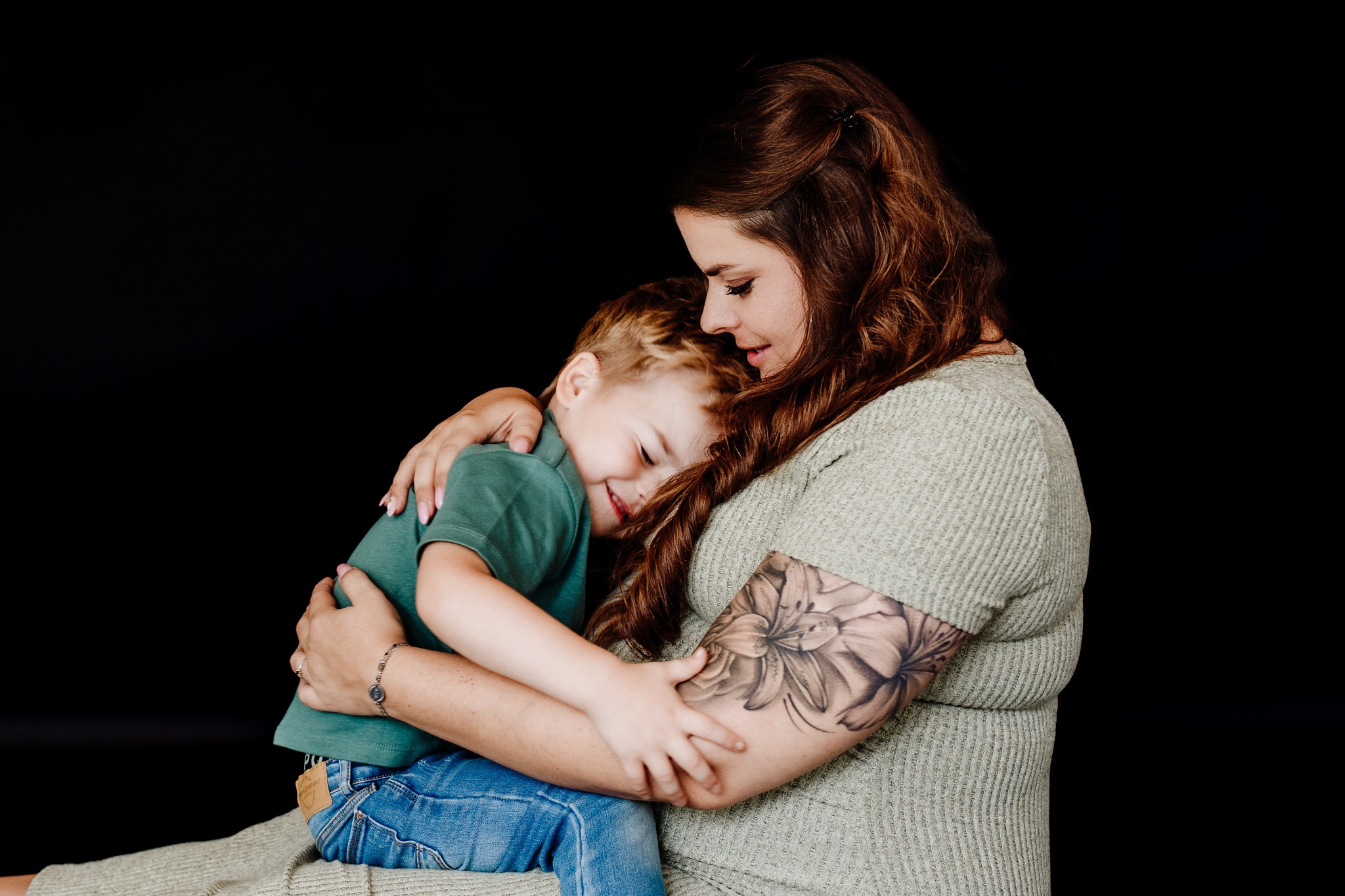 De grote broer was er ook bij en dat was echt super. Ik merk vaak dat ouders het spannend vinden hoe een kleintje reageert in een studio met lampen, maar in mijn studio in Zuidland is dat nergens voor nodig. Ik vind het zo belangrijk dat iedereen gewoon zichzelf kan zijn voor mijn camera. We maken er gewoon een feestje van! Dan krijg je die echte momenten en die dikke knuffels die je later met een grote glimlach terugkijkt.